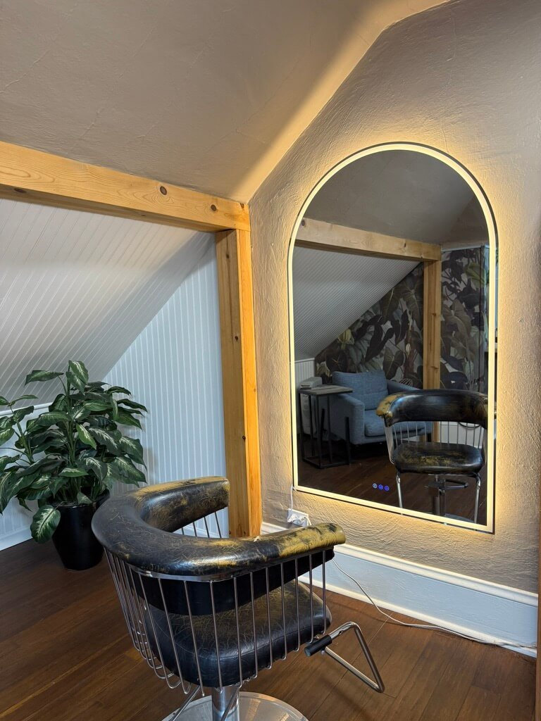 My styling station is located in an upstairs room, full of natural light, with a cozy and private feeling. All styling and color services take place in the room, but please be aware that the shampoo bowls are located downstairs in a shared space. Please be prepared to take a few trips up and down the stairs to the shampoo bowls as needed throughout your service.